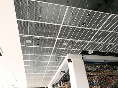 吊頂格柵網(wǎng)采用鋼格板設(shè)計(jì)制造。結(jié)構(gòu)輕便,美觀,高強(qiáng)度可行人,安裝簡便表面熱浸鋅,叫熱鍍鋅鋼格板吊頂防腐耐用且免油漆維護(hù)。廣泛適用于煙草制造、工業(yè)廠房、大型體育場館、會(huì)展中心、大型商業(yè)、車站、碼頭、機(jī)場等工業(yè)及民用建筑的吊頂。